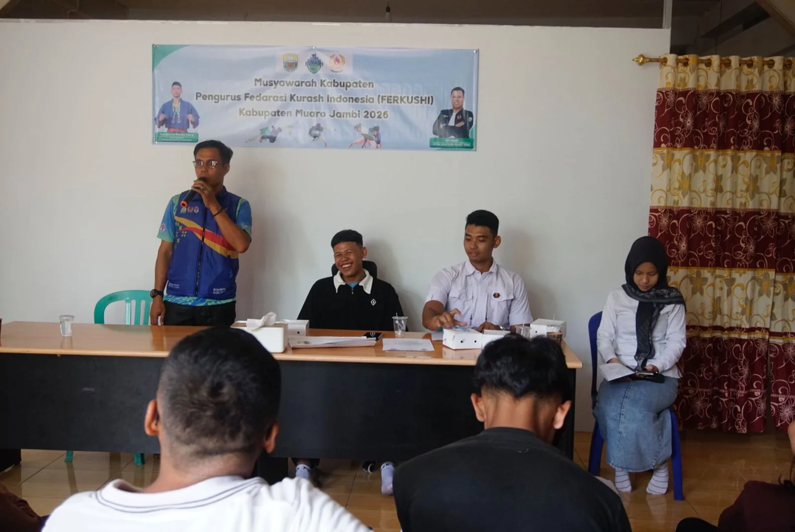Forum penting yang akan menentukan arah olahraga kurash empat tahun ke depan ini dihadiri oleh Ketua KONI Kabupaten Muaro Jambi yang diwakili Kabid Organisasi Hendri Herianto, S.Pd, Ketua Umum Ferkushi Provinsi Jambi Johari, Ketua Caretaker M. Pandhusatria, serta jajaran panitia dan pengurus.