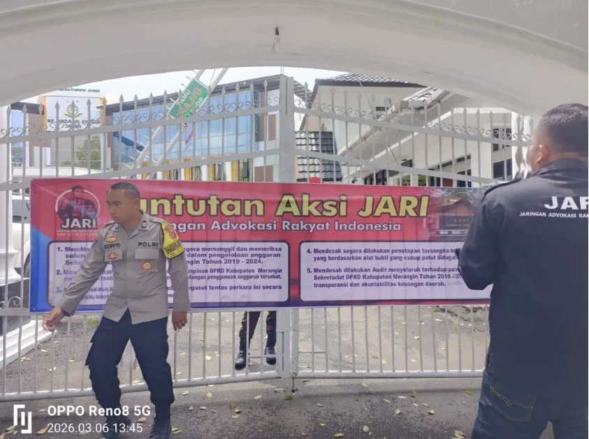 Faktatoday.comJAMBI – Desakan publik terhadap penuntasan dugaan penyelewengan anggaran di Sekretariat DPRD Kabupaten Merangin semakin menguat. Jaringan Advokasi Rakyat Indonesia (JARI) menggelar aksi di depan Kantor Kejaksaan Tinggi (Kejati) Jambi, Jumat (6/3/2026), menuntut kepastian hukum atas kasus yang menjadi sorotan masyarakat tersebut.